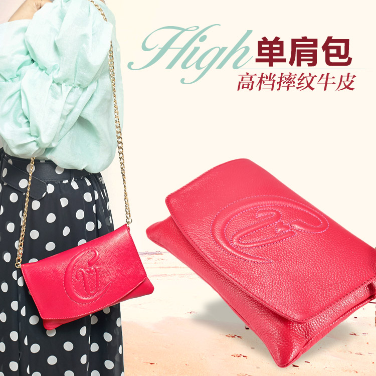 微笑生活品牌 头层摔纹皮 链条包 可单肩、斜跨 内含暗袋 可装手机、钱包、钥匙等